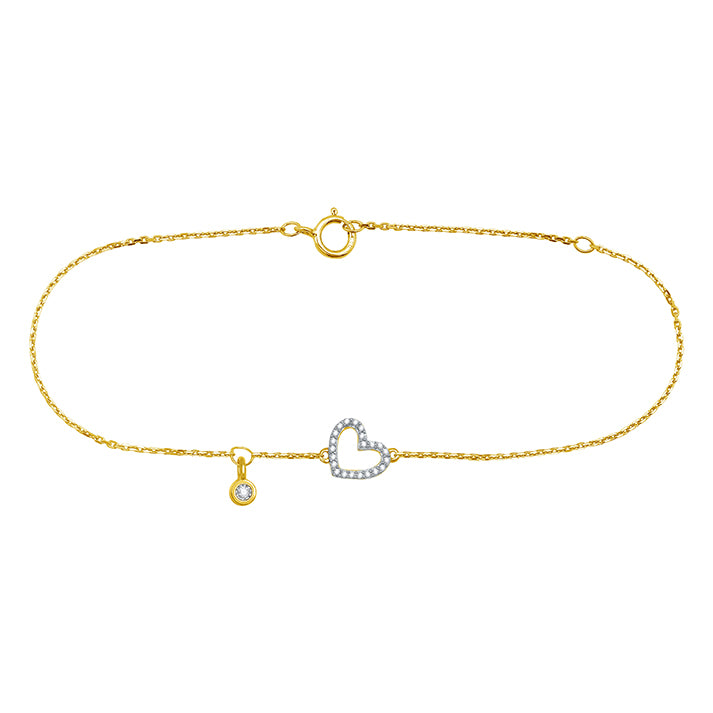 Our Customizable Heart On Sleeve Diamond Bracelet, adorned with twenty-three exquisite diamond pieces is set in 9KT Gold.This bracelet captures the essence of luxury with its dazzling sparkle and sophisticated design. You can also customize the Diamond Drop by selecting from 12 beautiful birthstones of your choice!