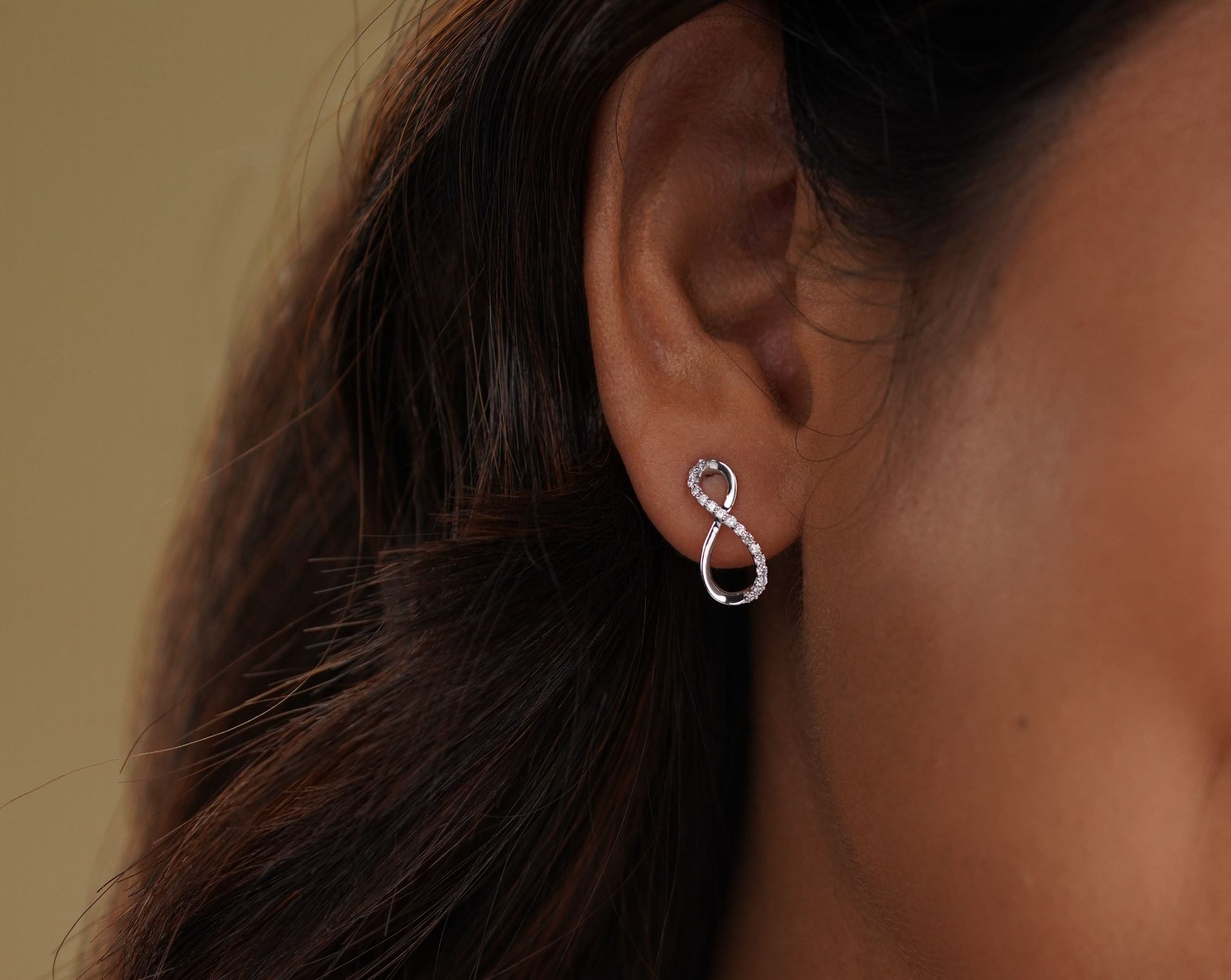 This Infinity Diamond Earrings, featuring thirty-two dazzling diamond pieces set in 9KT Gold. These earrings exude timeless elegance and sophistication, illuminating any ensemble with their radiant sparkle and understated luxury. Perfect for adding glamour to any occasion.Match them with our Infinity collections.