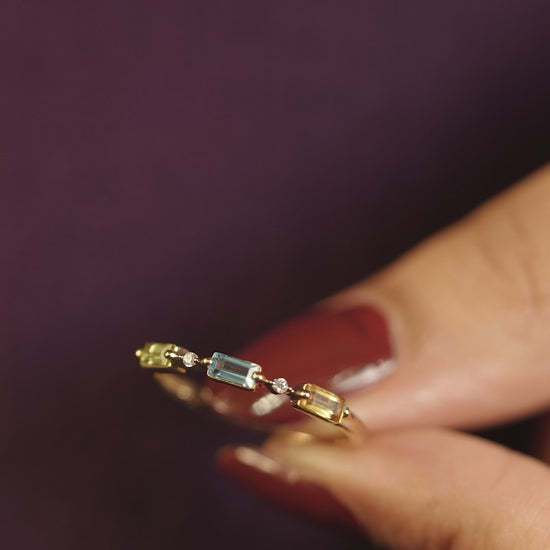 Introducing our Tricolor Gemstone Harmony Ring, expertly crafted in 9KT Gold. Adorned with a radiant Peridot, a dazzling Citrine, and a vibrant Swiss Blue Topaz, this ring embodies a harmonious blend of colors, adding a touch of elegance and vibrancy to your style.