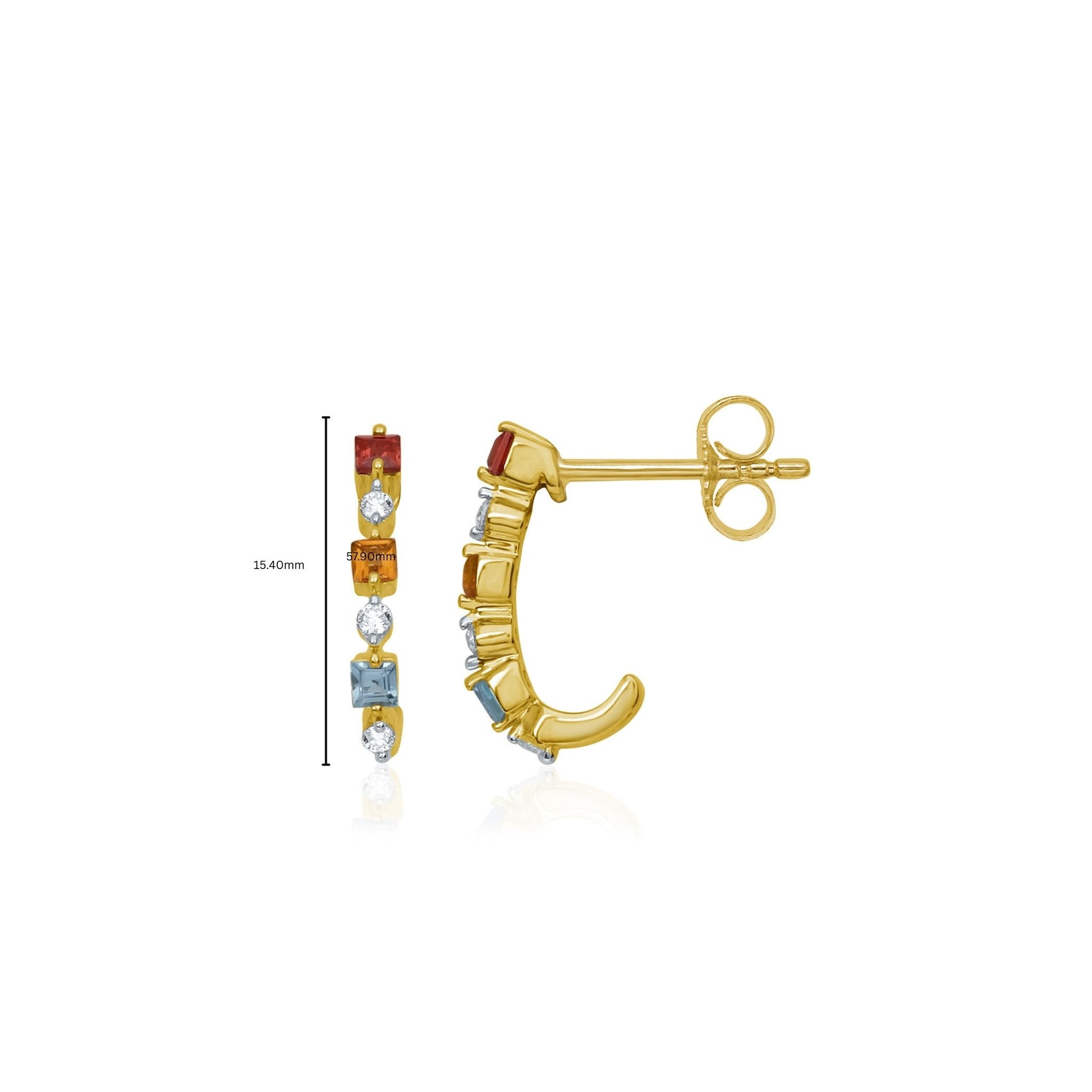Introducing our Gemstone Harmony Earrings, meticulously crafted in 9KT Gold. Adorned with a symphony of two Garnets, two Citrines, and two Swiss Blue Topaz gemstones, these earrings harmonize vibrant hues, exuding elegance and charm. Elevate your style with this exquisite fusion of gemstones.