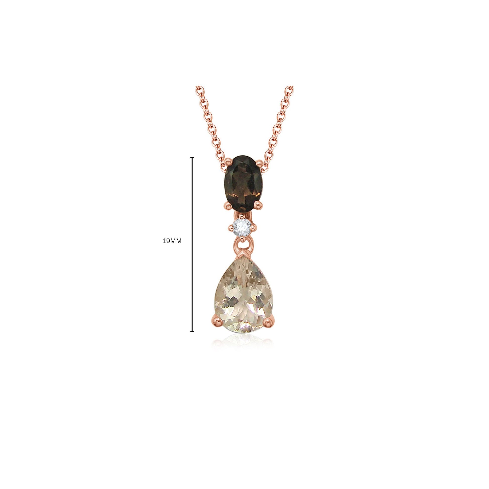 Discover Timeless Sophistication with the Ethereal elegance Pendant,a striking piece crafted with Luxurious 9KT gold.This Exquisite Pendant showcases the Harmonious Blend of Smokey Quartz and Morganite, designed to captivate and elevate.