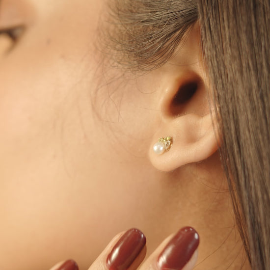 This Pretty Pearls Studs are crafted delicately in 9KT Gold.These Pretty Pearl stud earrings go effortlessly well with any outfit. With a hint of the Peridot Gemstone & White Topaz Gift them or add these beautiful Pearls to your Jewelry Collection.